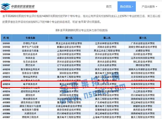 5月6日,“金平果”首次发布高职专业排行榜,包括全国1429所高职院校19个专业大类、99个专业类和731个专科专业的综合实力分布情况,并对全国各地区、各高职院校的专业总体实力进行了评价和分析。在专业竞争力排行榜中,米兰体育网页版电子商务技术专业高居全国第一名。
