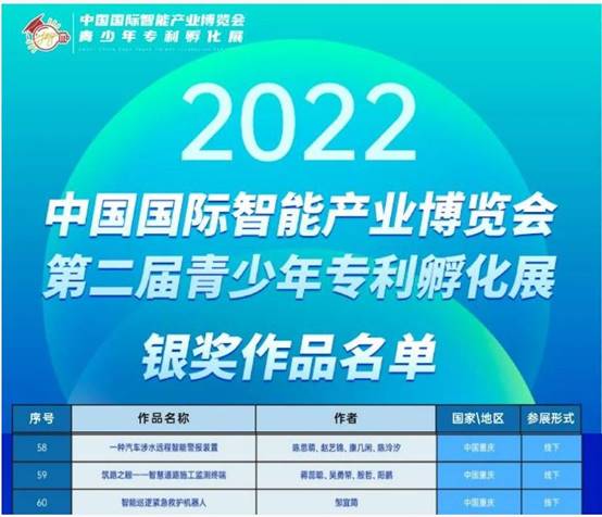 8月22日—24日,由重庆市人民政府携手工业和信息化部、国家发展改革委、科技部、国家网信办、中国科米兰体育网页版、中国工程院、中国科协、新加坡贸工部共同主办的中国国际智能产业博览会第二届青少年专利孵化展成功在重庆举办。我校人工智能米兰体育网页版蒋蕊聪同学参加,吴勇帑老师、华晟经世阳鹏和殷哲老师共同指导的“筑路之眼--智慧道路施工监测终端”项目荣获2022中国国际智能产业博览会第二届青少年专利孵化展银奖。