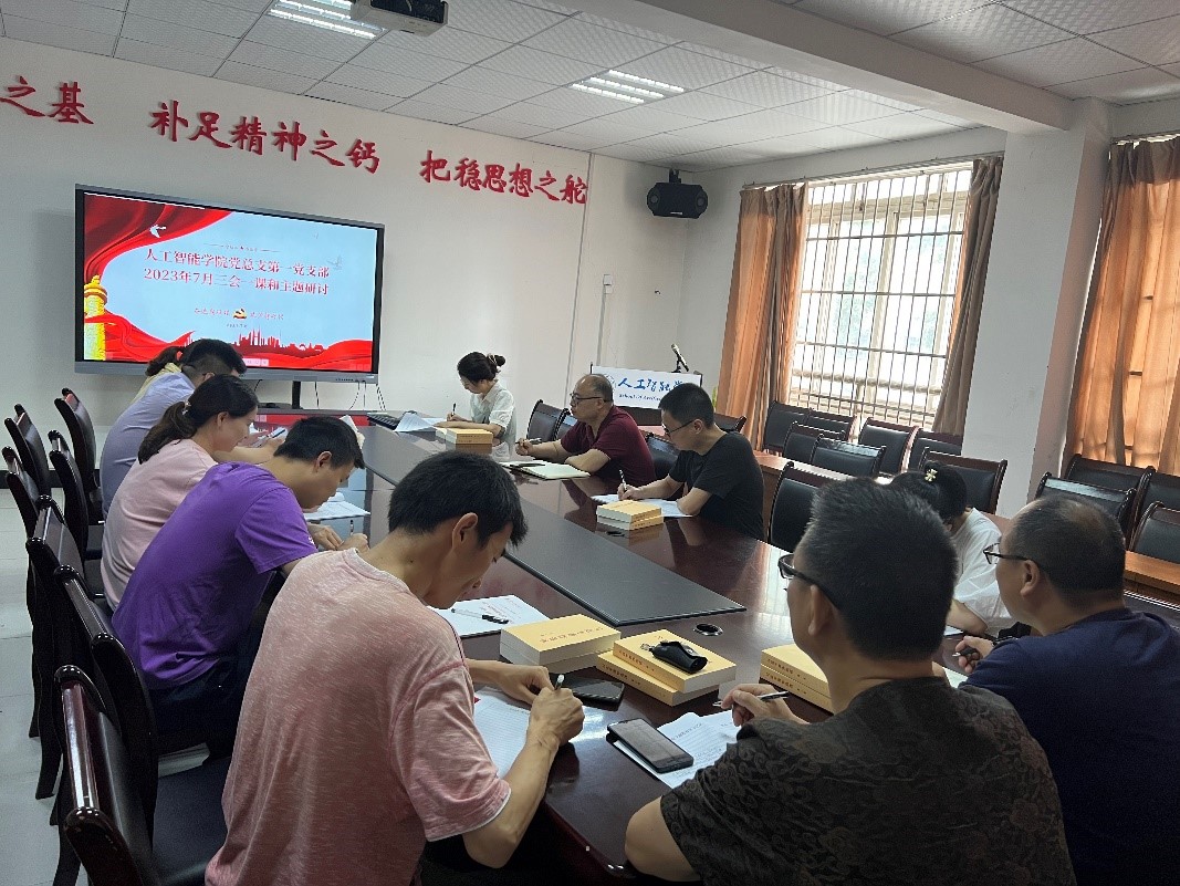 2023年7月4日,人工智能米兰体育网页版党总支第一党支部在信科楼503会议室开展了7月“三会一课”及主题党日学习。会议由支部书记袁枫主持,支部11名教师党员参加。