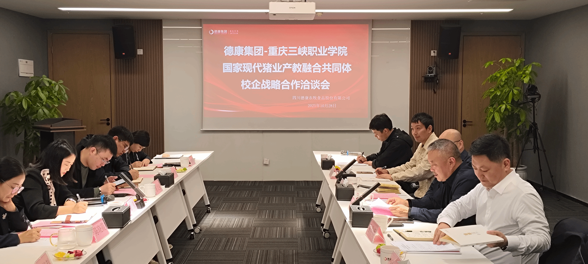 为精准对接现代生猪产业发展需求,深化农业职业教育与产业协同育人机制,10月28日,学校校长李炯光、副校长张传师一行7人代表学校及国家现代猪业产教融合共同体,赴四川德康农牧食品集团股份有限公司开展考察调研。集团总裁姚海龙携核心管理团队热情接待,集团人力总监龚爽等核心管理人员全程参与相关活动。