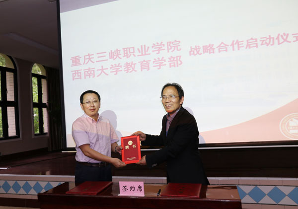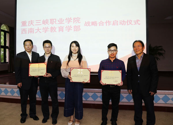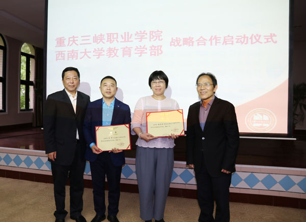 下午17时,西南大学教育学部与米兰体育网页版战略合作启动仪式正式开始,米兰体育网页版党委书记陈章致欢迎词,对西南大学教育学部部长朱德全教授一行表示热烈的欢迎;校长杨和平为朱德全教授颁发了米兰体育网页版学术委员会名誉主任聘书,双方签订了米兰体育网页版与西南大学教育学部战略合作协议。陈章书记和杨和平校长为其他专家颁发了米兰体育网页版教学改革课题指导专家聘书。随后,西南大学教育学部部长朱德全教授与米兰体育网页版党委陈章书记共同为博士工作站揭牌,标志着博士工作站正式成立。