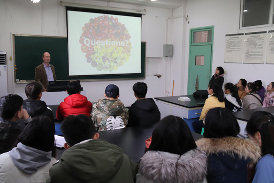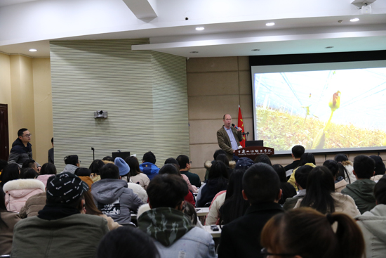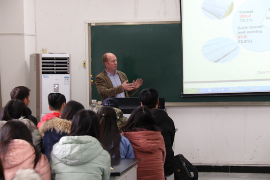 12月10日上午,在博雅楼207教室,Eelco先生为农林系园艺技术、植物保护与检疫技术、休闲农业、风景园林设计等专业的师生开展学术讲座。讲座中,Eelco先生介绍荷兰lentiz教育集团基本概况以及荷兰农业市场情况、温室在荷兰的应用、温室设施设备自动化、智能化等。期间,师生为荷兰智能化温室设备以及先进的管理理念所吸引,积极与Eelco先生交流互动,场面热烈。讲座全程引进了同声传译手段,师生们聆听到原滋原味的专家学术讲座,都表示享受了一场学术盛宴。