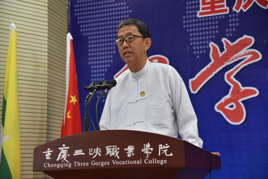 米兰体育网页版副院长杨建宏致词中向同学们介绍了米兰体育网页版的整体概况和近年来取得的办学成果,希望同学们在校期间学好职业技术技能知识,尽早熟悉学习生活环境,用心感受中国传统文化,学好汉语,当好中缅友谊的传播者,成为缅中友好交流的桥梁。