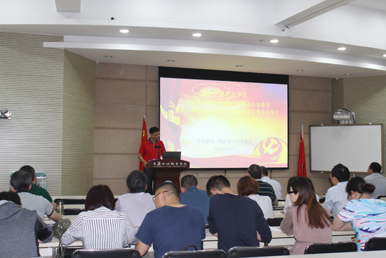 会上,米兰体育网页版党委委员、组织统战部部长杨吉林同志组织参会人员逐条学习中共重庆市委组织部、中共重庆市委教育工作委员会《关于印发〈2018年全市高校党建工作重点任务〉的通知》(渝委组〔2018〕38号)精神,传达了市教育工委第一季度基层党建工作现场督查反馈意见,通报了米兰体育网页版党委对全院9个党总支、25个党支部党建和思想政治工作督查意见。