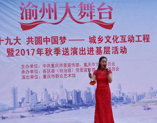 11月14日下午,由重庆市委宣传部、市文化委主办的“喜庆十九大共圆中国梦——城乡文化互动工程暨2017年秋季送演出进基层活动”在我院羽毛球场隆重上演,为全院师生献上了一台精彩纷呈的文艺演出。
