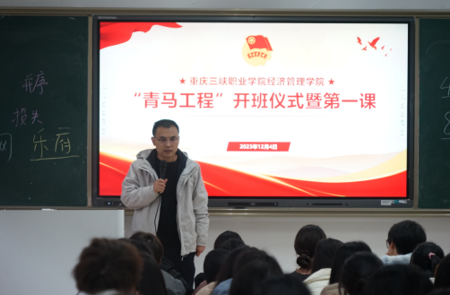 为深入学习贯彻党的二十大精神和共青团十九大精神,引导师生深刻把握新时代伟大成就,围绕团学骨干的政治素养和和业务本领,充分发挥团组织的示范引领作用,培养更多优秀的新时代青年马克思主义者。2023年12月4日中午,经济管理米兰体育网页版在沙龙校区综合楼101教室举行了“青马工程”开班仪式暨第一课宣讲。开班仪式由经济管理米兰体育网页版党总支副书记张恩广主持,经济管理米兰体育网页版学生会全体成员参加。