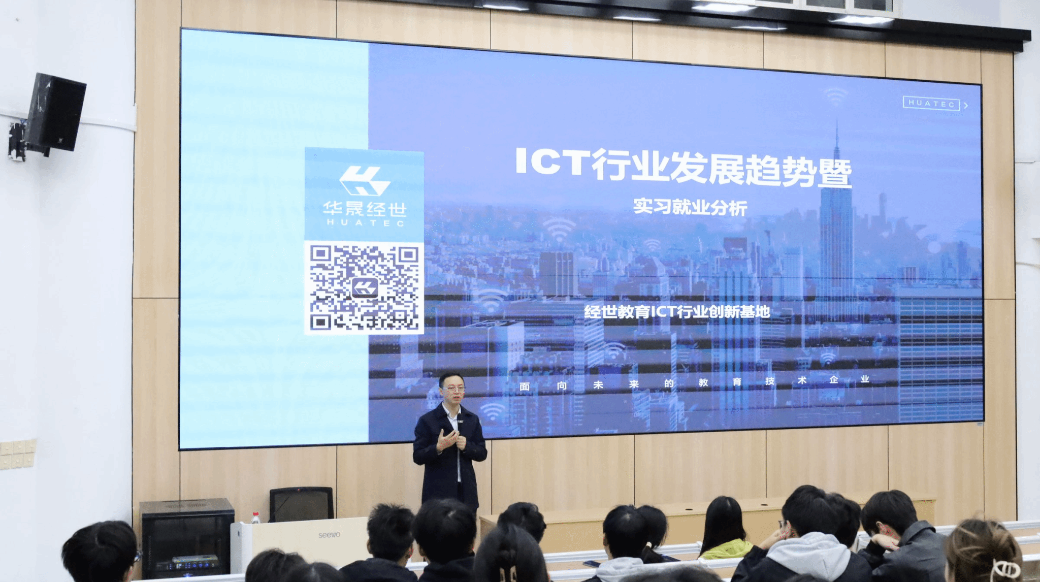 为加强新生职业引导、拓展就业视野,10月21日,人工智能米兰体育网页版在信科楼220教室举办“ICT行业发展趋势暨实习就业分析”专题讲座。本次活动特邀华晟经世教育集团项目经理、高级网络工程师阳鹏担任主讲,2025级200余名学生代表参与学习。讲座以“就业引航”为主线,聚焦专业建设与就业能力协同发展。