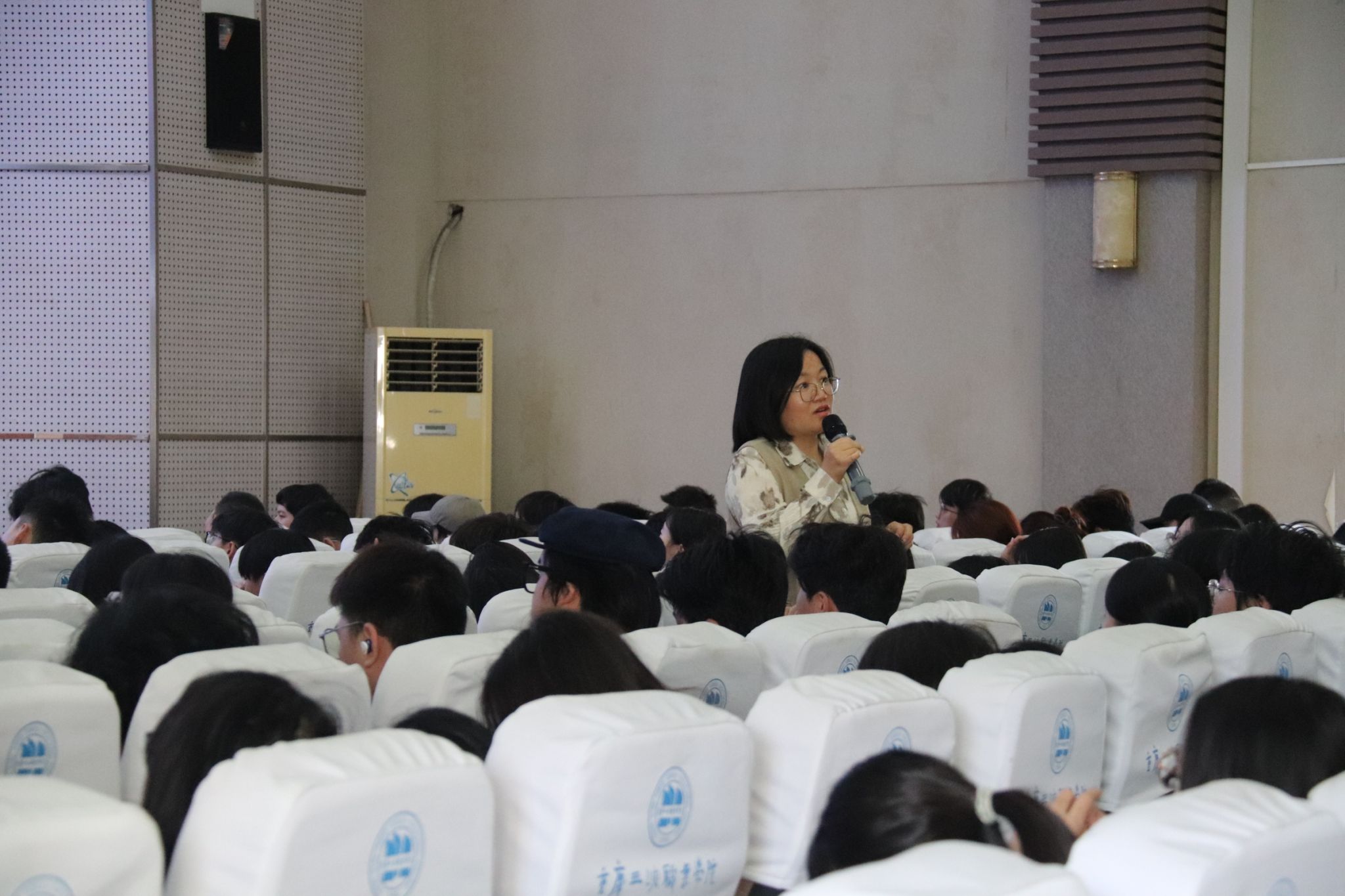 讲座中,米兰体育网页版副院长曹剑以现场问卷调查结果为依据,针对学生普遍关注的就业方向、职业规划、岗位选择等核心问题展开深入剖析与细致解答。她结合往届优秀毕业生的成功案例,着重阐述树立正确就业观、主动把握就业机遇的重要性,鼓励同学们提前筹备、增强信心,以积极姿态应对就业挑战。
