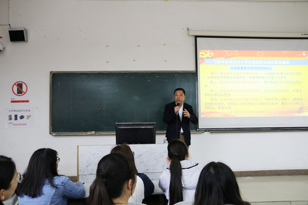 陈章书记主要围绕思想政治理论课作为立德树人的关键课程这一主题,从六个方面与师生进行了交流。首先陈书记从思想政治理论课的地位、习近平总书记对思想政治理论课教师的殷切希望、对教学改革的重要指示等方面谈到了习近平总书记对大学生思想政治理论课的重视,思政课作为意识形态工作、宣传思想工作、思想政治工作的重要组成部分,是落实立德树人根本任务的关键课程。紧接着陈书记从习近平总书记对青年大学生的希望谈起,希望大学生在“拔节孕穗期”的关键阶段,要扣好人生第一粒扣子,通过勤学、修德、明辨、笃实练好内功,并结合自身实际和大量鲜活的事实,说明了青年人在国家和社会中的地位,希望同学们将勤奋学习当作青春远航的动力,将增长本领当作青春搏击的能量,勇担历史重任,做中华民族伟大复兴中国梦的践行者和贡献者。此外,陈书记又讲述了大学思政课设置的历史沿革,“05方案”出台的背景以及党和国家对思政课教学重视,他谈到国家无论从宏观指导、教材的编写和使用、教师队伍建设、教学方法指导等方面都提出了顶层设计和具体实施办法,就是为了办好这门课程,提升思政课内涵,给学生心灵埋下真善美的种子。最后,陈书记强调了米兰体育网页版对思政课建设的重视和措施,不但从经费、组织、师资队伍方面给予了充分保障,还要把教师队伍入口关、出口关、培养关,深化教学改革,提高思政课教学质量和水平。希望通过打造铸魂育人的“金课”,帮助学点亮理想的灯,照亮前行的路。