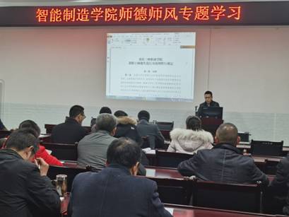 为进一步加强智能制造米兰体育网页版师德师风建设,12月9日下午,智能制造米兰体育网页版在奥训楼308会议室开展了师德师风专题学习。会议由智能制造米兰体育网页版党总支书记、院长熊江主持,智能制造米兰体育网页版全体教职工参加了学习。