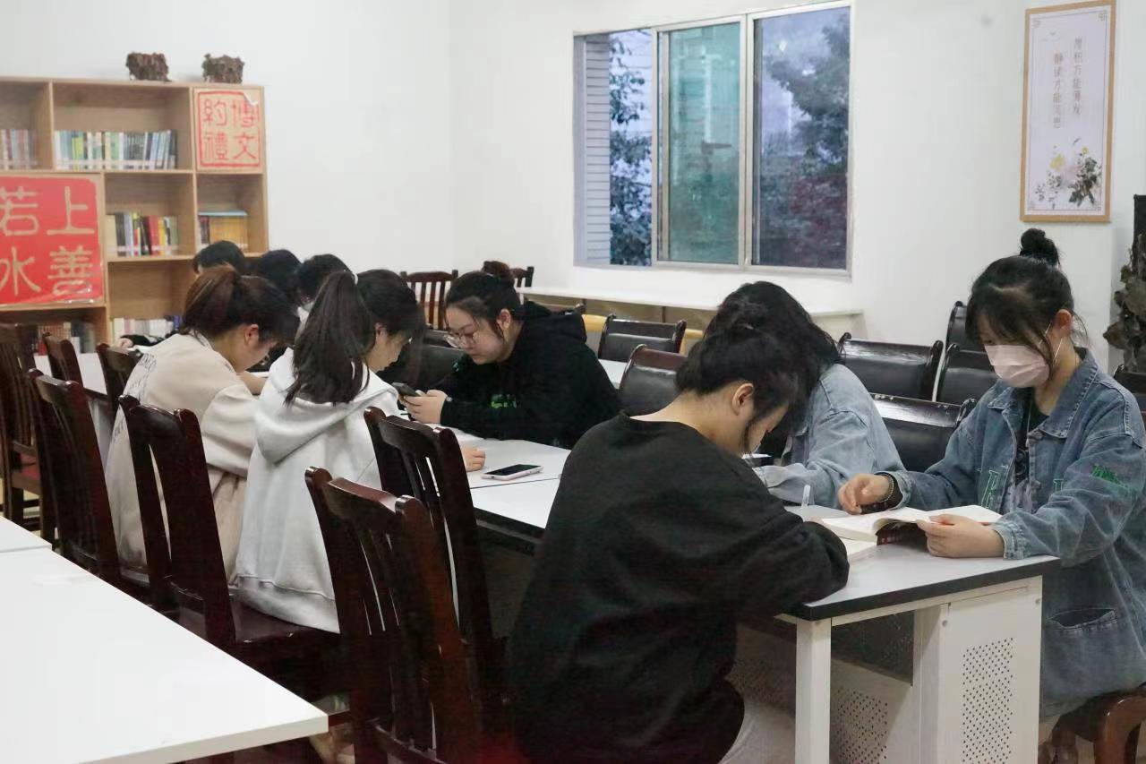 明德书院藏书近1000余册,涵盖多个学科门类,书院内设有舒服柔软的桌椅、高矮合适的书架、生机盎然的植物,环境优雅舒适,书籍种类齐全,内容丰富,极大的方便了广大师生的读书需求,受到了广大师生的一致认可。