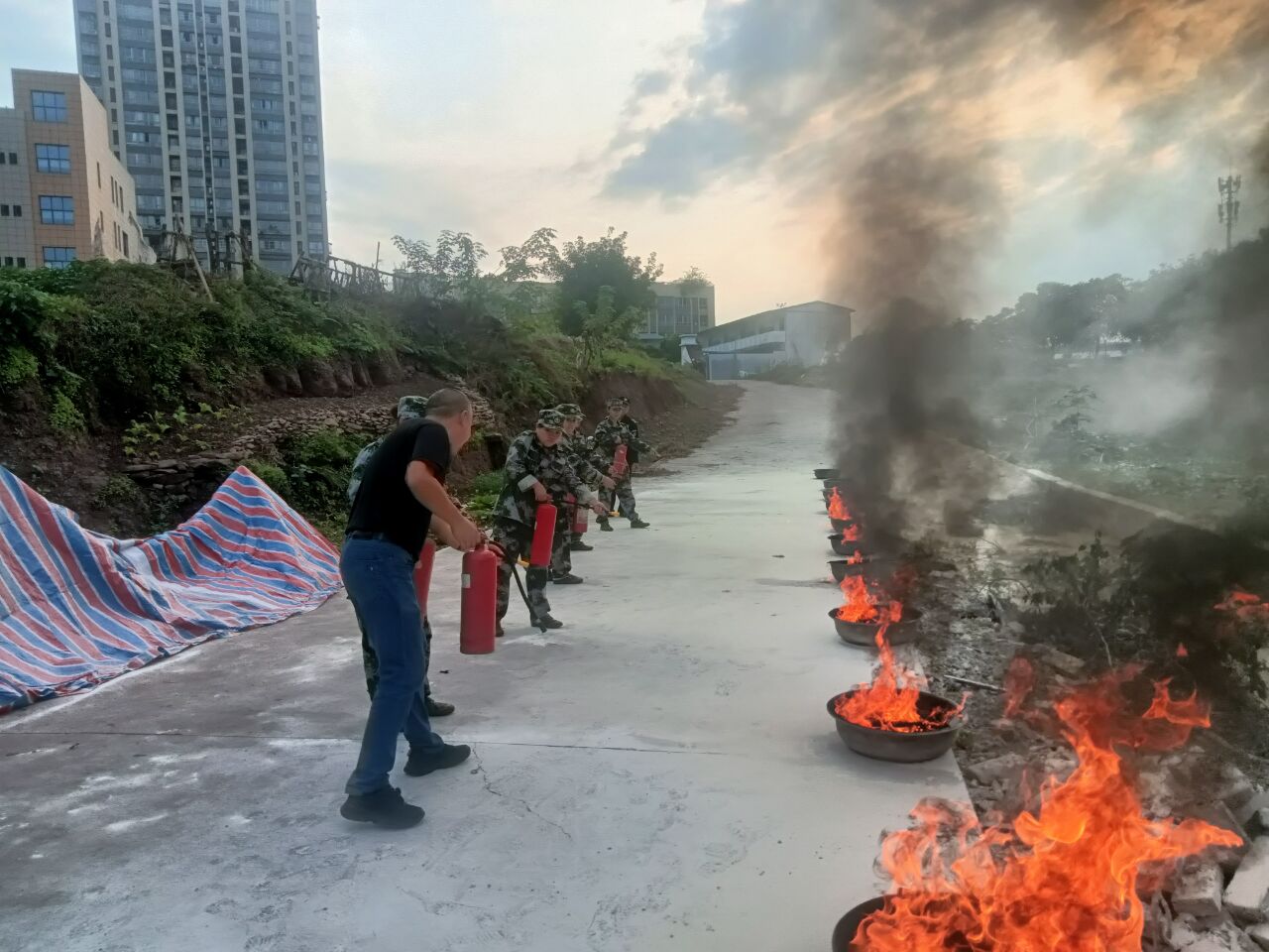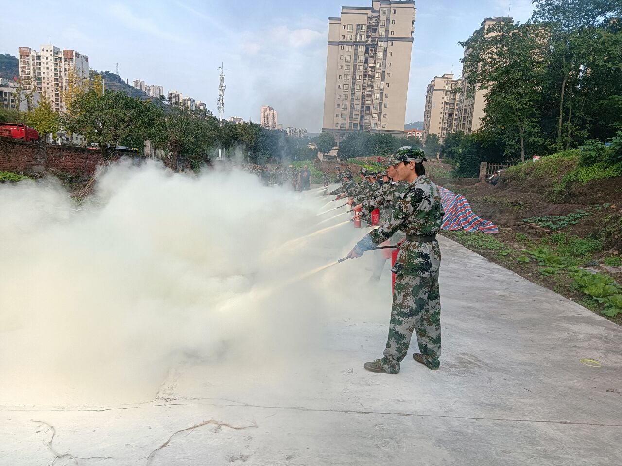双河口消防救援站官兵现场为师生们演示了灭火器、消防水带水枪的正确使用方法,展示和讲解了部分消防装备器材的穿戴,随即在每个军训连抽取了5名同学共206名师生手持灭火器,按照“一提二拔三握四压”的正确使用流程,分组轮流开展了实战灭火,提升了实战灭火技能。