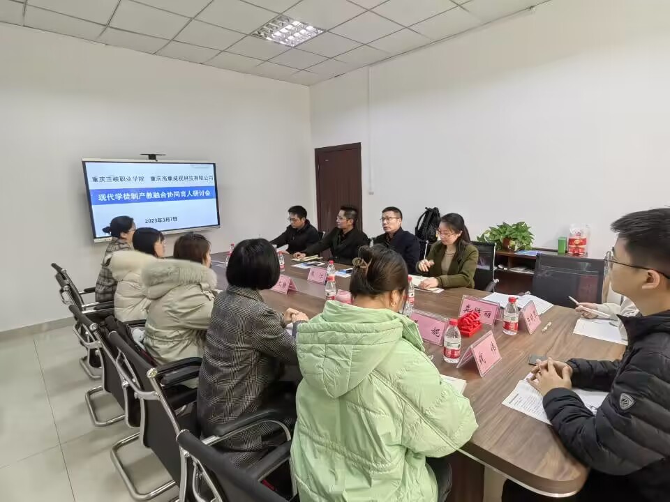 为扎实推进智能制造米兰体育网页版现代学徒制建设,深化产教融合,提升人才培养质量,3月7日,重庆海康威视科技有限公司向文静经理一行来我院就现代学徒制产教融合协同育人模式、现代学徒制试点班建设等事宜进行深入交流。智能制造米兰体育网页版党总支书记熊江、副院长郎朗、重庆海康威视科技有限公司经理向文静及相关专业老师参加了会议。