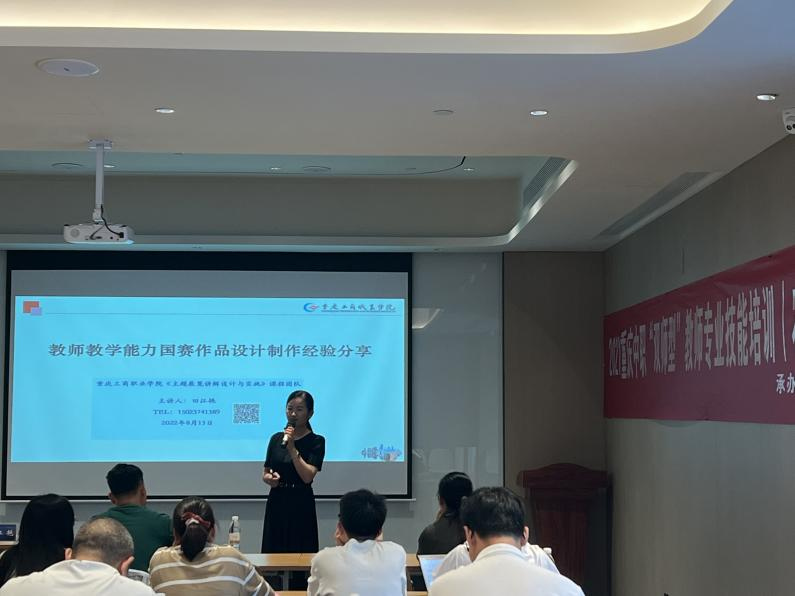 图为全国教学能力比赛一等奖获得者田江艳老师给学员作《教师教学能力提升》专题讲座