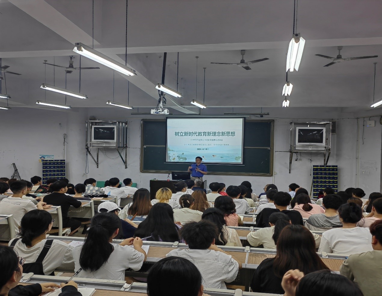 为推进学习贯彻习近平新时代中国特色社会主义思想主题教育走深走实,按照米兰体育网页版党委关于《2023年党委委员和各级党组织书记讲专题党课实施方案》的工作安排,2023年6月15日,米兰体育网页版党委委员、统战部部长杨吉林在信科楼120教室,为人工智能米兰体育网页版师生上专题党课。党课由人工智能米兰体育网页版党总支书记熊泽明主持,米兰体育网页版200余名师生参加。