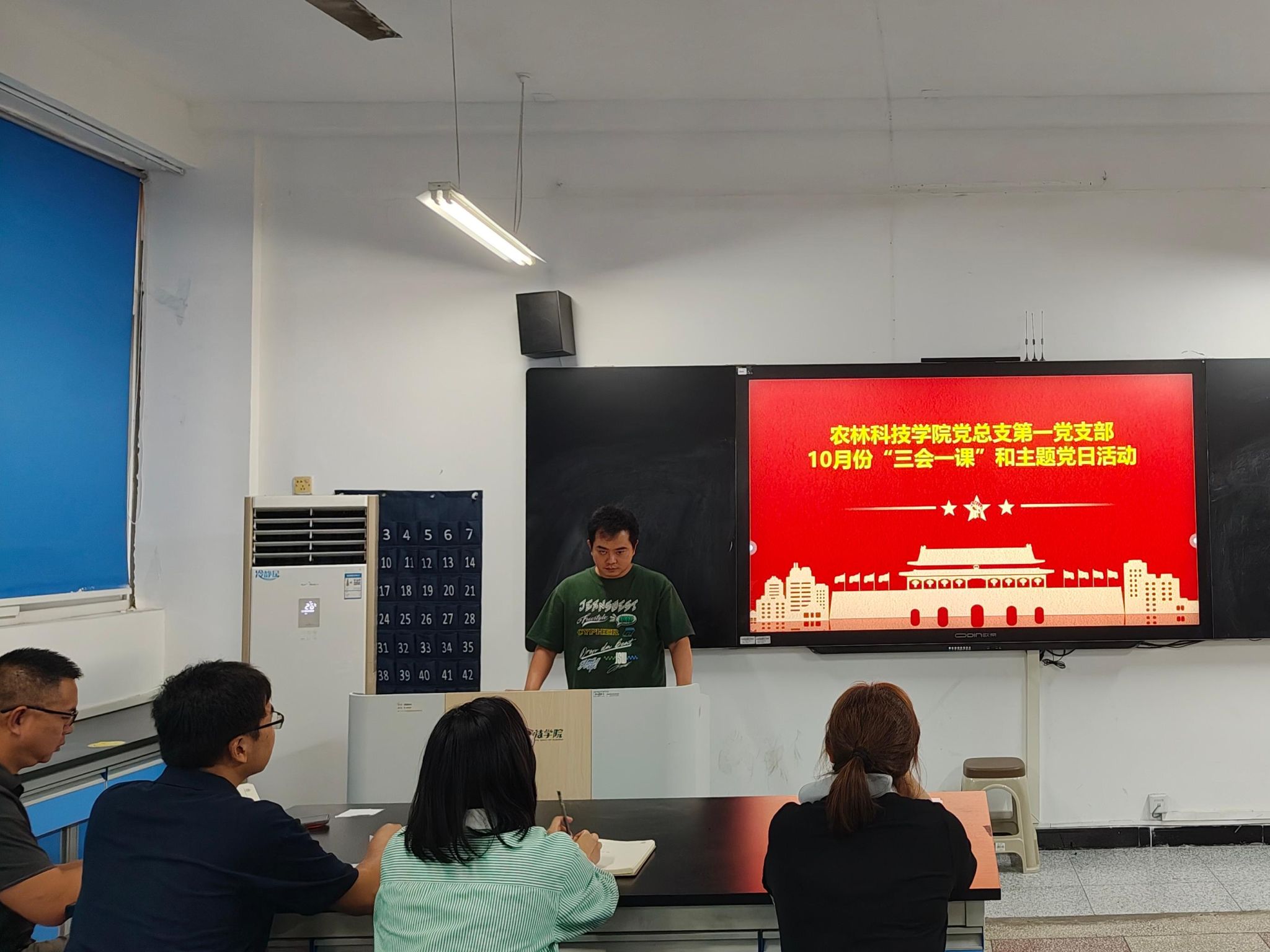10月13日,农林科技米兰体育网页版党总支第一党支部在农林楼607教室开展了10月份“三会一课”学习和主题党日活动,全体党员参加,支部宣传委员游龙同志主持。