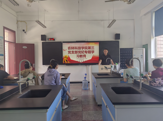 2024年5月16日中午,农林科技米兰体育网页版第三党支部在农林楼308室召开会议,进行了5月份的“三会一课”及主题党日学习,本次会议由支部书记刘一丁同志主持,支部党员共8名同志参加。