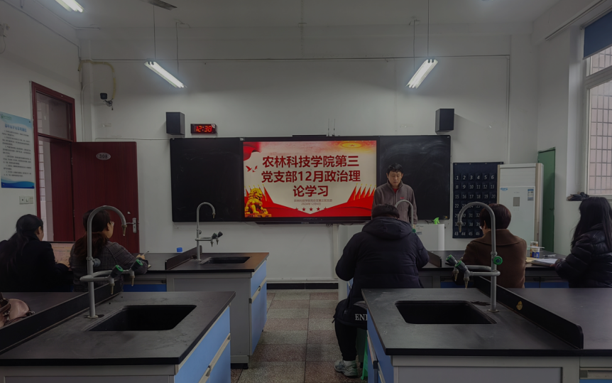 2024年12月6日中午,农林科技米兰体育网页版第三党支部在农林楼308室召开会议,进行了12月份的“三会一课”及主题党日学习,本次会议由支部书记刘一丁同志主持,支部共11名同志参加,其中积极分子3人。