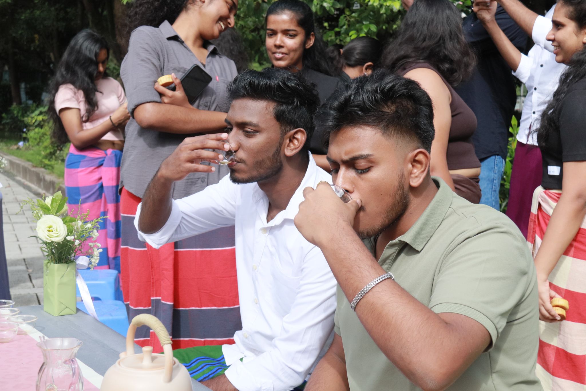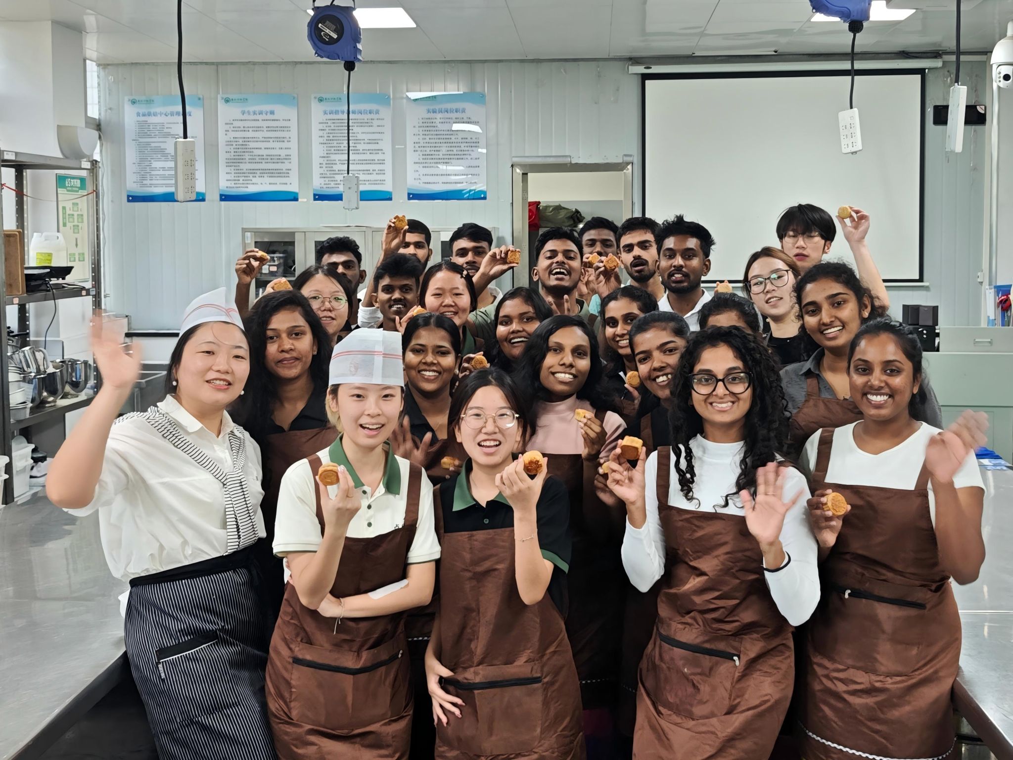 除了贴心的慰问,农林科技米兰体育网页版还为留学生安排了丰富的中秋文化体验活动。大家在烘焙实训中心化身“月饼工匠”,与中国学生并肩而立,在专业老师的悉心指导下,开启了一场妙趣横生的月饼制作之旅。在风景如画的校园湖畔,一场雅致的茶艺表演也在精彩上演。留学生们小心翼翼地接过茶杯,细细端详着茶汤的色泽,仔细品味着其中的甘甜与醇厚,还积极与身边的同学交流着品茶的感受,分享着这份独特的体验。