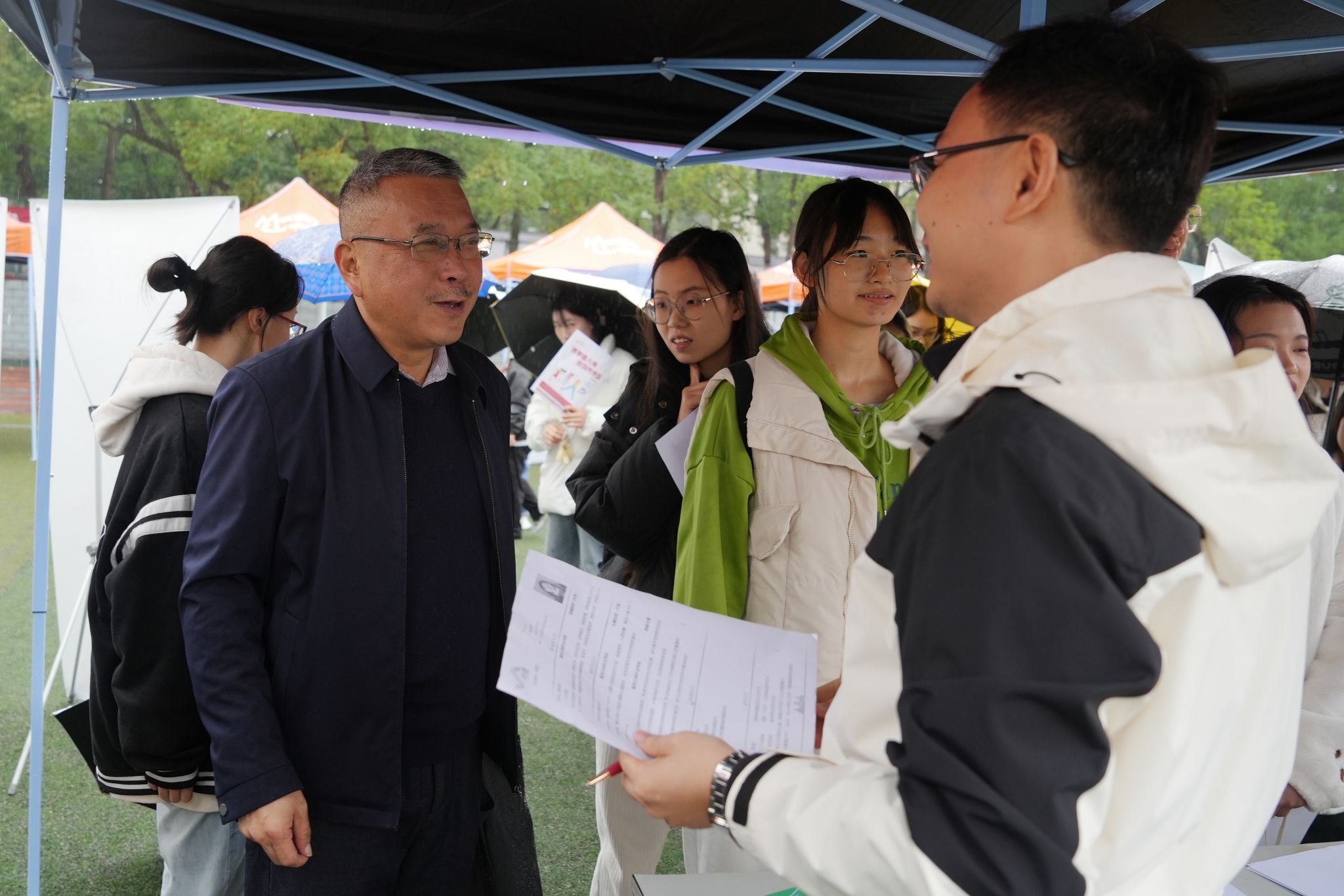 为深入贯彻教育部“访企拓岗促就业”专项行动的精神,积极响应教育部、省教育厅的相关要求,进一步促进产科教深度融合,提升人才培养质量,有力推动毕业生就业创业工作,米兰体育网页版院长李炯光率领副院长袁德梽以及农林科技米兰体育网页版党总支书记、院长丁廷发在2025届毕业生双选会期间深入各招聘展位,与企业代表进行了深入的交流与对话。他们围绕人才需求标准、行业发展趋势等话题展开了热烈的探讨,共同为人才培养与就业市场的无缝对接寻找最佳路径。李炯光院长在交流中明确指出:“希望校企双方在人才培养、求职就业等学生成长成才的关键环节能够深化合作,携手共进。”