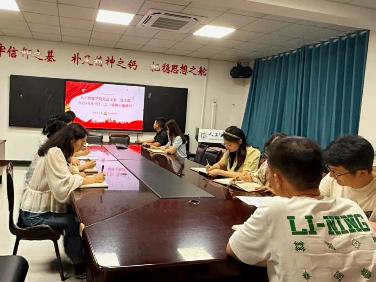 2025年9月16日,人工智能米兰体育网页版党总支第二党支部在信科楼503会议室开展“三会一课”及主题党日活动,支部11名党员参加。