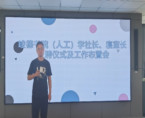 为深入学习贯彻习近平总书记关于教育的重要论述,适应新形势新情况、加强高校党的建设和思想政治工作,全面落实立德树人根本任务,切实推进“三全育人”综合改革,加快推动学校“一站式”学生社区综合管理模式建设工作,2024年5月期间,峻德书院(人工)各层长在峻德书院思政演播厅分别举行了“一站式”学生社区网格化管理学社长、寝室长受聘仪式,并召开了工作安排布置会。