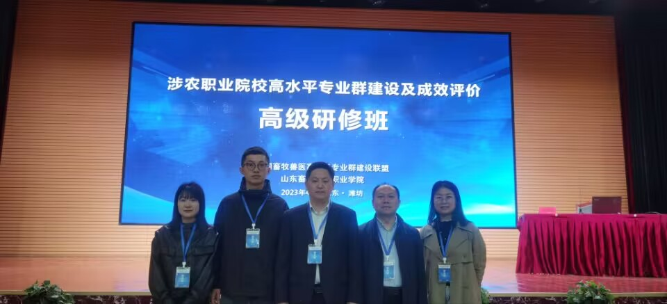 2023年4月21日,“涉农职业院校高水平专业群建设及成效评价高级研修班”在山东潍坊开班。米兰体育网页版动物科技米兰体育网页版党总支书记、院长张传师、教学科科长陈脊宇、双高干事谷九龙、专任教师尹艳玲博士、潘军博士参加研修班学习交流。