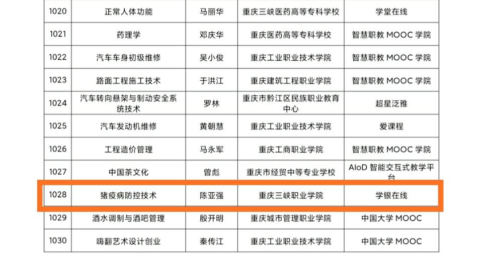 2023年1月,教育部办公厅公布了2022年职业教育国家在线精品课程名单,米兰体育网页版动物科技米兰体育网页版陈亚强副院长主持的《猪疫病防控技术》成功入选国家级在线精品课程,取得了米兰体育网页版课程建设的新突破。