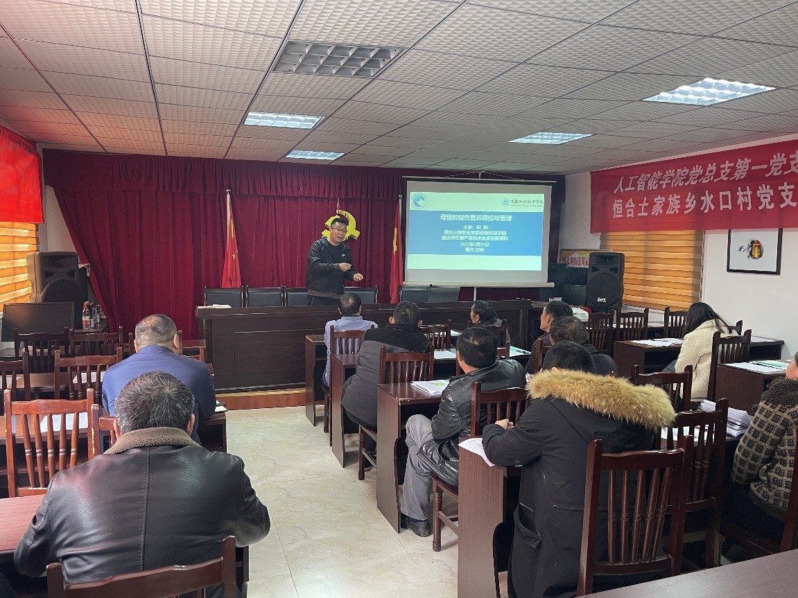 2022年3月29日,为进一步推动乡村振兴战略实施,促进地方产业发展,受重庆市生猪产业技术体系饲料与营养功能研究室岗位专家张传师教授委托,饲料与营养功能研究室何航老师赴万州恒合土家族乡水口村开展技术技能培训,本次培训20人次,共计发放资料50份。