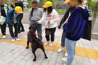 10月15日早上我们的同学早早的就来到篮球场集合,戴上了小黄帽准备开始今天的职业体验。首先我们来到的是新动科楼118,由吴有华老师和一位学长来给我们介绍动物的品种、习性、来历、特点等,还为我们播放了学姐的驯导视频,同学们观看的也很专注。 在观看视频的过程中我们也能看出,要想和狗狗配合的完美必须与狗狗们建立起默契度和信赖度。然后,同学们进行了亲身体验, 学会了一些和狗狗配合的基础动作,后面学长又给我们讲了一些关于驯导师的工作,让我们进一步对宠物驯导加深了了解。