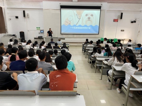 在这个收获的季节我院迎来了宠物医疗技术专业的新生,为了让新生对本专业有一个初步的认识,教研室于9月28-30日,举行了为期三天的职业体验。职业体验第一天,在博雅楼阶梯教室,由新瑞鹏宠物医疗集团的华西区副总经理黄杰、技术高级经理艾生权和运营高级经理韩晶为新生们带来了精彩的演讲,让新生们初步了解了宠物医疗行业的发展方向。