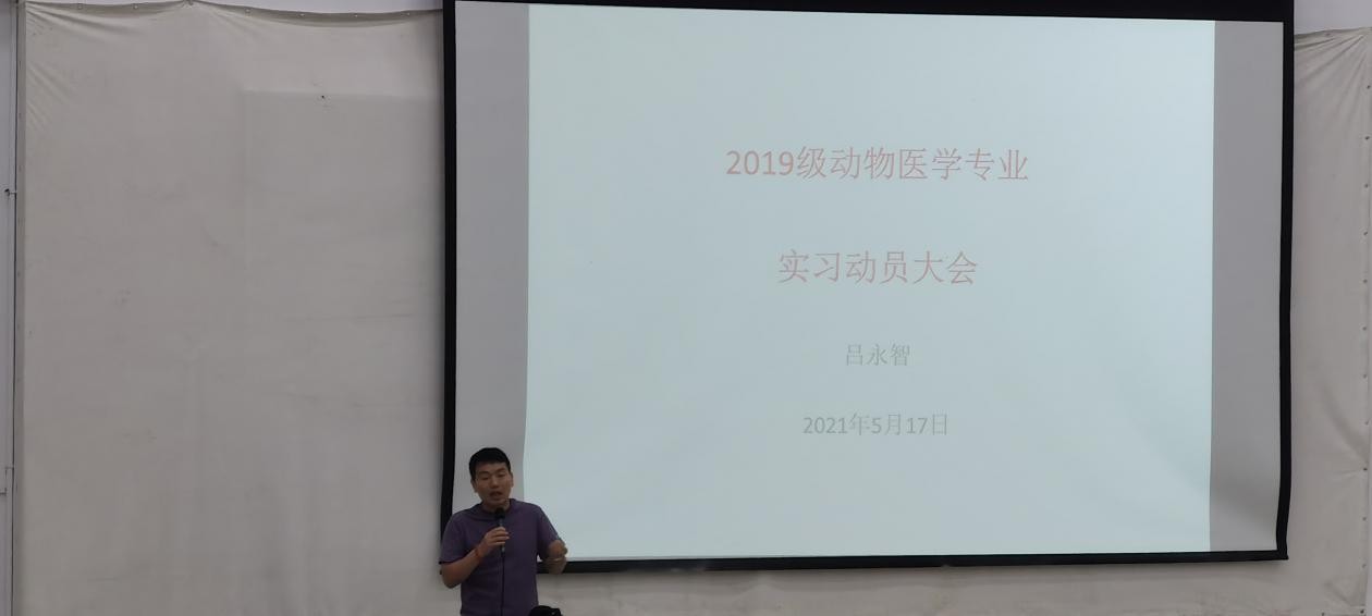 2021年5月17日,动物医学专业2019级跟岗实习动员大会在博雅楼阶梯教室召开,动物医学专业主任吕永智老师主持动员大会并做动员讲话。会上,吕永智老师深刻阐述了这次实习对于在校生的重大意义,充分阐明了这次实习的目的、管理制度和为人处世的道理。