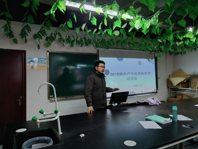 2021年1月3日,水产养殖技术专业全体教师与2018级水产班学生在动科楼121教室召开了顶岗实习的动员会。教研室主任任思宇老师重点将实习内容,实习时间及实习过程中会遇到的问题向学生们进行了梳理与阐述。会上,他向学生说明了实习过程一定会按照重庆市教委与米兰体育网页版针对教学的管理规定实施过程评价与考核。