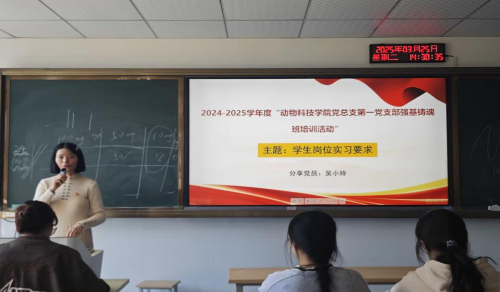 为助力班级成员成长,提升大家对专业实践与个人发展的认知,动物科技米兰体育网页版第一党支部强基铸魂班于3月25日下午2:30在动科楼509教室召开了一场干货满满的培训交流会。强基铸魂班的同学们积极参与,现场气氛热烈。