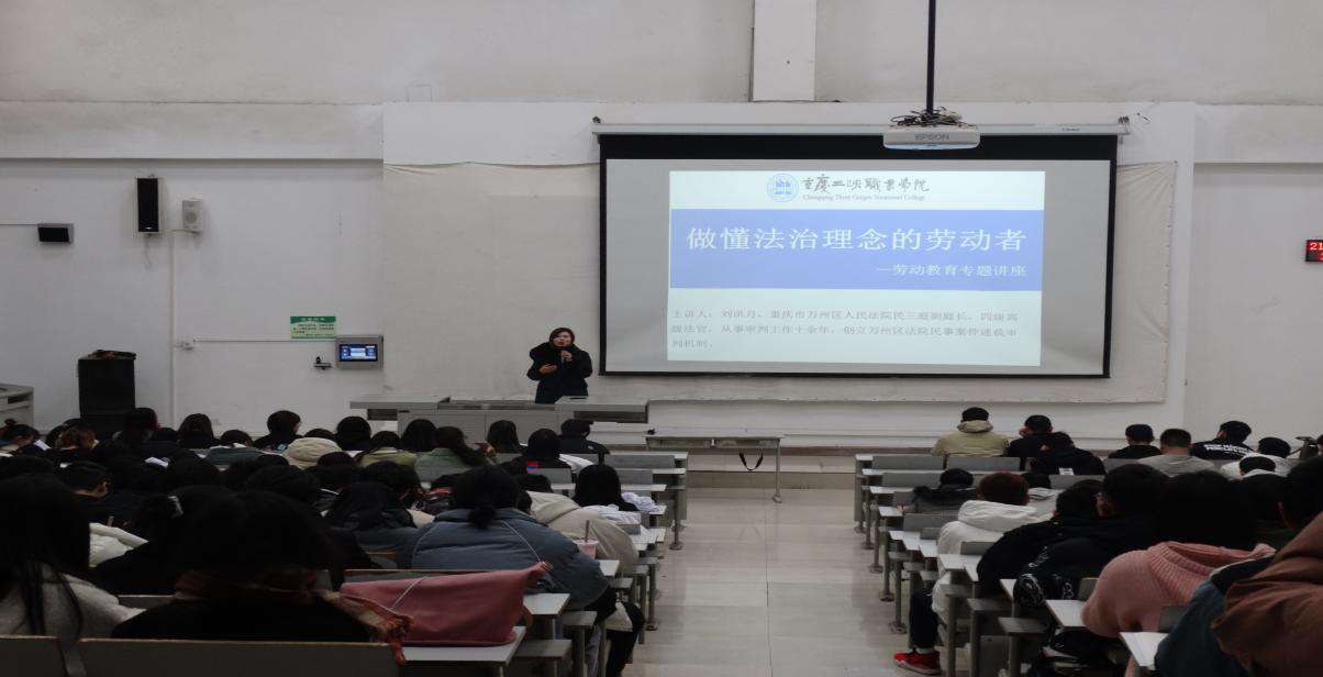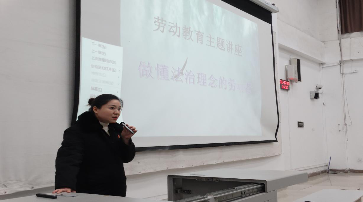 为加强学生的法制教育,丰富学生的法律知识和提高自我保护意识,做一个懂法治理念的劳动者,我院于2021年12月8日星期四下午在博雅楼阶梯教室开展了劳动教育主题讲座——做懂法治理念的劳动者活动,活动对象为正在上《劳动教育》课的大二学生。