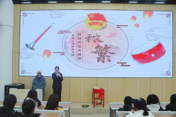2025年3月16日,春意盎然的校园里,信科楼220教室热闹非凡,“秾繁”传统文化大讲堂再度开讲。近200名同学齐聚一堂,满怀期待地迎接这场非遗文化的盛宴。本次活动特邀万州区级非物质文化遗产“吹打乐”代表性传承人唐明兴老师,带领大家走进吹打乐的世界,感受传统艺术的魅力。