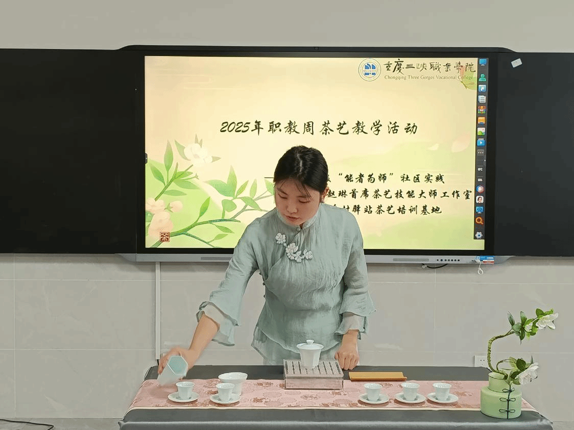 在活动现场,学生志愿者们向师生展示了盖碗茶与调饮茶的标准化冲泡技艺。从水温的精确控制到茶叶的精准配比,从古典茶礼的传承到现代创意茶饮的调配,每一个环节都彰显了职业院校的专业素养。现场设立的“茶文化科普角”通过图文展板,系统地梳理了中国茶道的历史脉络与当代价值,为学生提供了学习中国传统茶文化的知识框架。
