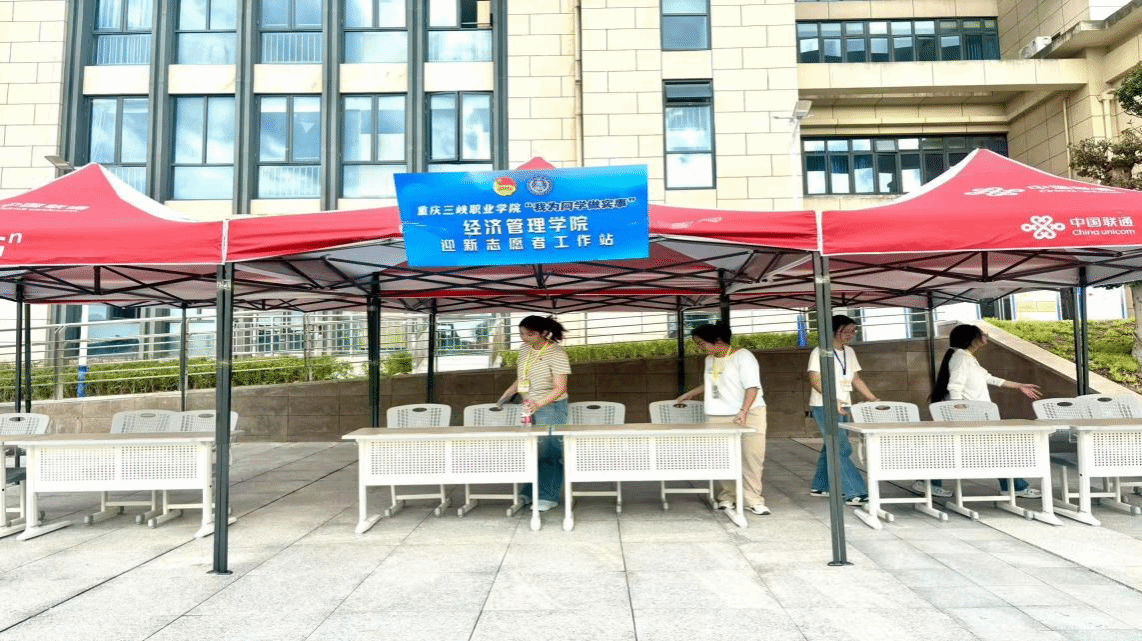 米兰体育网页版外的“米兰体育网页版‘我为同学做实事’经济管理米兰体育网页版迎新志愿者工作站”蓝色标牌下,志愿者们正仔细布置桌椅。红色遮阳棚下的工作站将成为新生入校时的“温馨港湾”,让他们在报到的第一刻就能感受到米兰体育网页版的贴心服务。