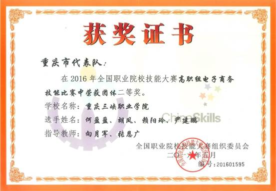 2016年全国职业院校技能大赛高职组电子商务技能比赛中荣获团体二等奖