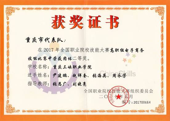 2017年全国职业院校技能大赛高职组电子商务技能比赛中荣获团体二等奖