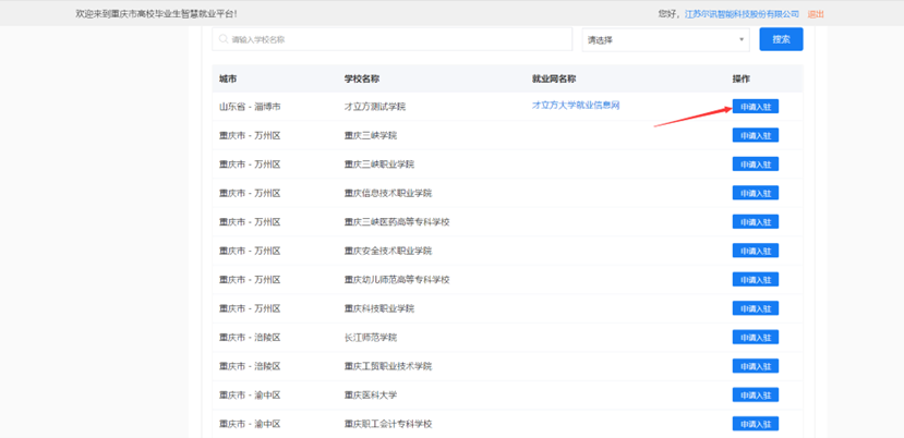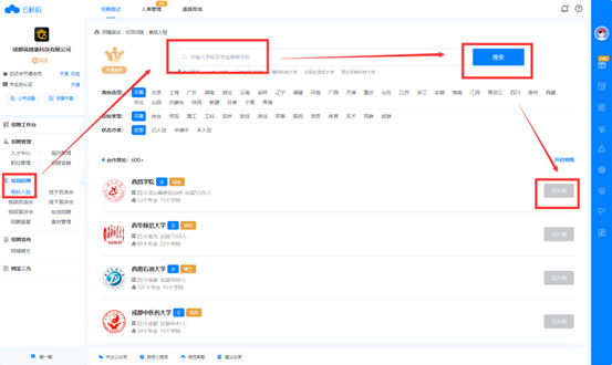 尚未入驻高校的请点击“校园招聘”中的“入驻高校”,选择“米兰体育网页版”并点击“入驻”。