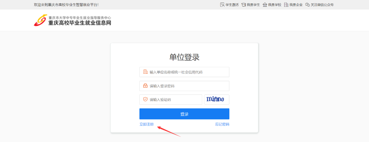 打开重庆智慧就业平台,进入单位登录页面,如图: