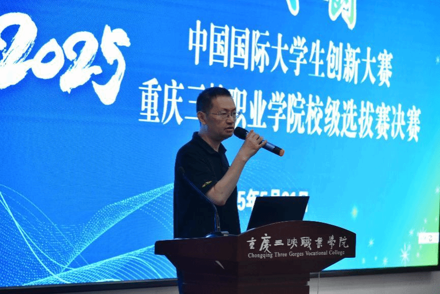 最后,重庆市教委学生就业与创新创业服务中心徐珮杰副主任发表了重要讲话,一方面,他对我校本次大赛的组织工作给予了高度肯定,另一方面,他鼓励在场师生持续提升项目质量,在未来的训练中不断打磨项目细节,注重理论与实践的结合,为更高阶赛事蓄力。