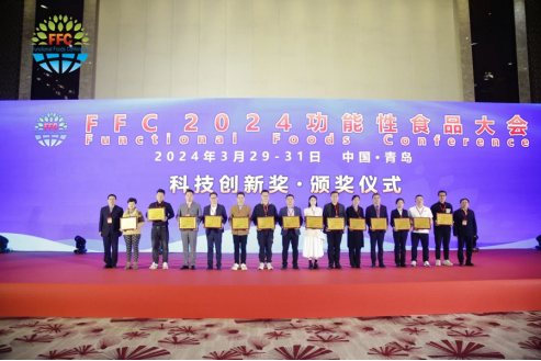 2024年3月29日至31日,重庆市科技局技术创新与应用发展乡村振兴专项“万州红桔种质资源保护与高效综合利用”项目主持人聂青玉带领项目组成员赴青岛参加FFC2024功能性食品大会。由项目组报送的付勋老师研制产品“平湖桔颂--古红桔酒”喜获产品创新奖。
