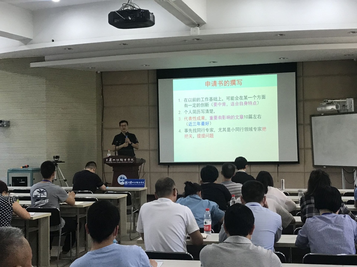 为了不断提高自然科学和人文社科教师的科研能力,我校分别举行了自然科学和人文社科系列讲座。5月29日下午,重庆三峡米兰体育网页版环化米兰体育网页版教授林俊杰应邀到我校作“自然科学科研项目申报技巧和注意事项”讲座,讲座由科研处廖勤丰副处长主持,相关米兰体育网页版的教师聆听了讲座。林俊杰教授通过国家自然基金项目为实例,深入细致为我校教师讲解了课题选题、课题设计、研究方法和研究设计,重点介绍了课题写作过程中需要注意的事项和技巧。教师们就研究方法、研究选题等问题与林教授进行了交流讨论。