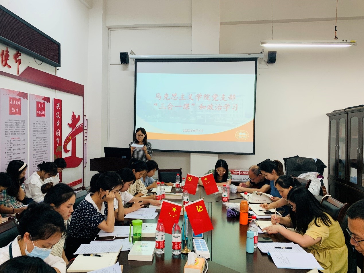 9月7日下午,马克思主义米兰体育网页版党支部在博雅楼109室开展“三会一课”和政治理论学习。会议由党支部副书记丁翠娟主持。