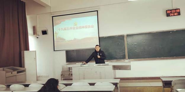 为深入学习贯彻党的十九届五中全会精神,12月8日,马克思主义米兰体育网页版院长姜荣在博雅楼106教室为马克思主义米兰体育网页版全体党员教师宣讲党的十九届五中全会精神和重庆市委五届九次全会精神。