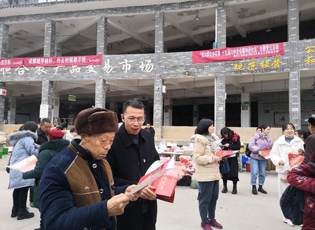 一早,党支部全体党员驱车赶到恒合乡场坝,当天正值赶集人流如织;老师们搭建宣传咨询服务台、悬挂宣传横幅,紧紧围绕服务实施乡村振兴战略,大力宣传十九届六中全会精神和党的富民政策,为广大群众发“十九届六中全会精神”宣传资料500余份,受到了现场群众的热烈欢迎。