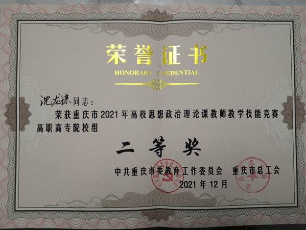 12月10日,2021年重庆市高校思想政治理论课教师教学技能竞赛在重庆医科大学缙云校区圆满落幕。马克思主义米兰体育网页版沈龙琼老师喜获高职高专院校组二等奖。