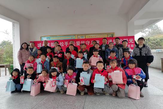 随后机关第二党总支第三党支部来到三元乡小学,为25个留守儿童送去学习文具、保温杯,让他们感受到阳光与温暖,孩子们纯真的笑容和真挚的感谢也触动着支部党员们,支部书记曾理说到:“孩子们,你们要好好学习,知识就是力量,长大后你们要为祖国建设贡献出自己的力量。”